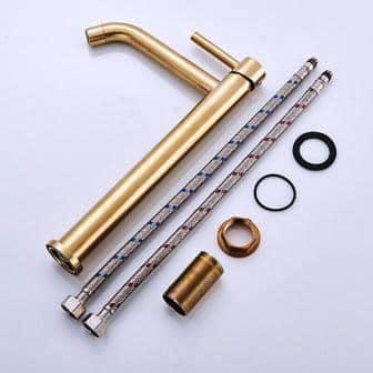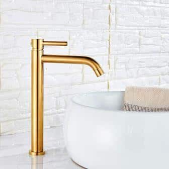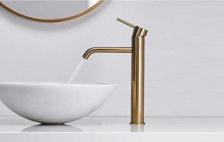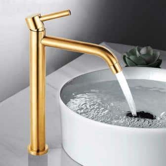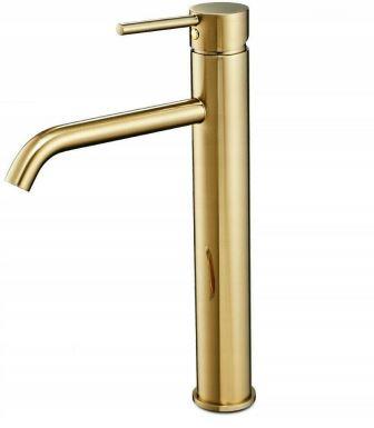 Perfecte Harmonie in Design: Onze smalle verhoogde fontein wastafel mengkraan is de ideale keuze voor elke badkamer, speciaal ontworpen om naadloos aan te sluiten bij hoge waskommen. De geborstelde gouden afwerking voegt een vleugje luxe toe aan uw ruimte.