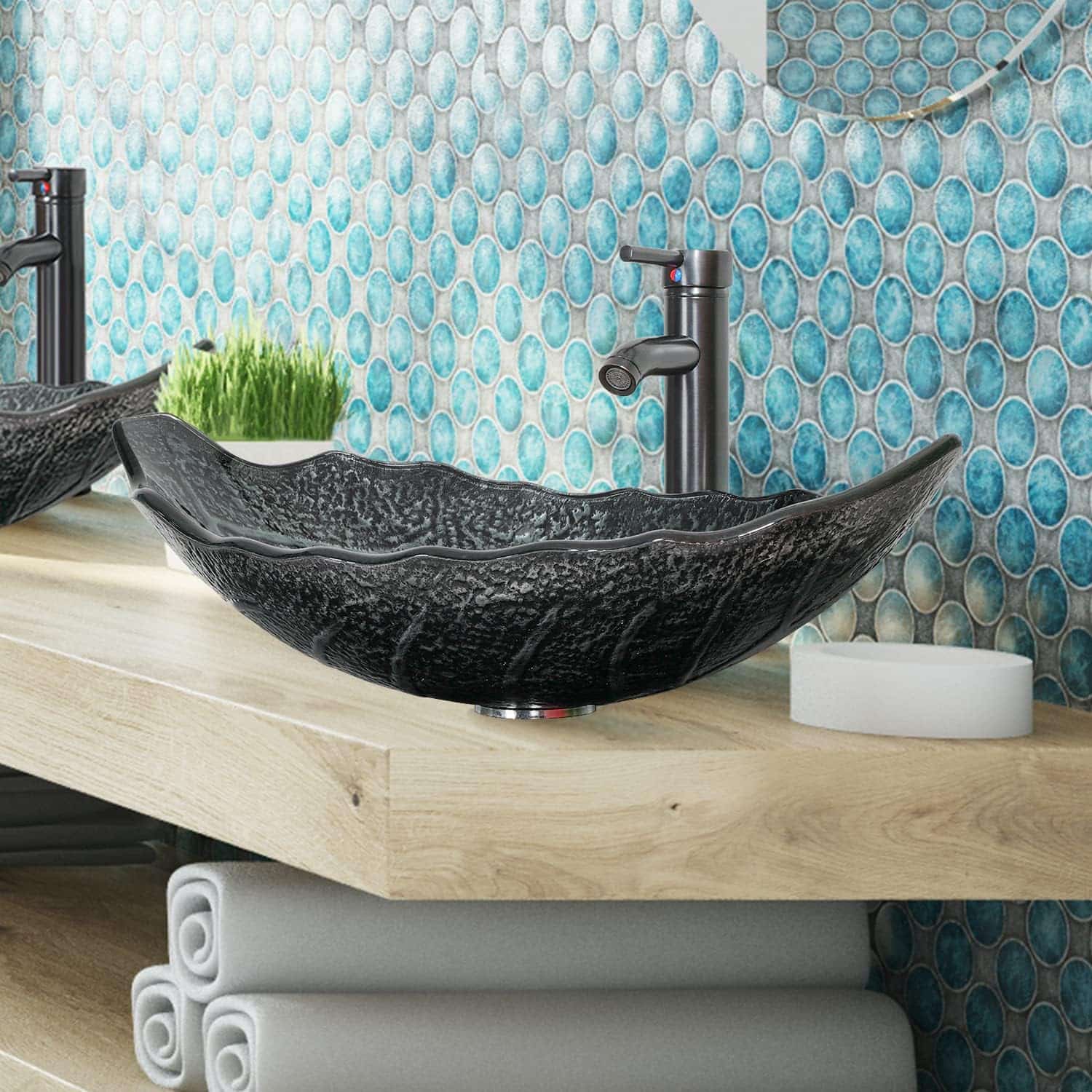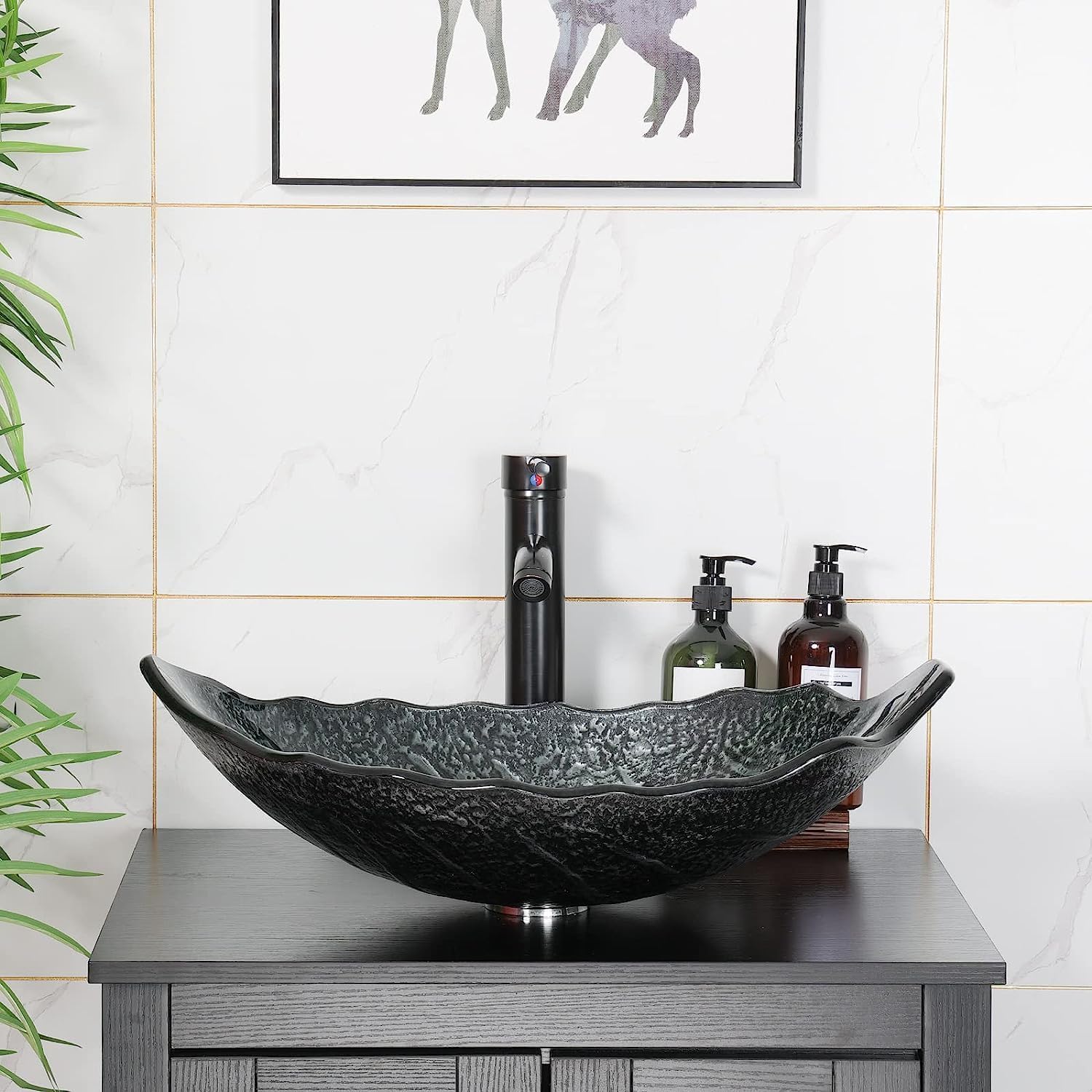 Zwarte Glazen Waskom met Moderne Kraan: Een Kunstzinnige Badkamerupgrade!