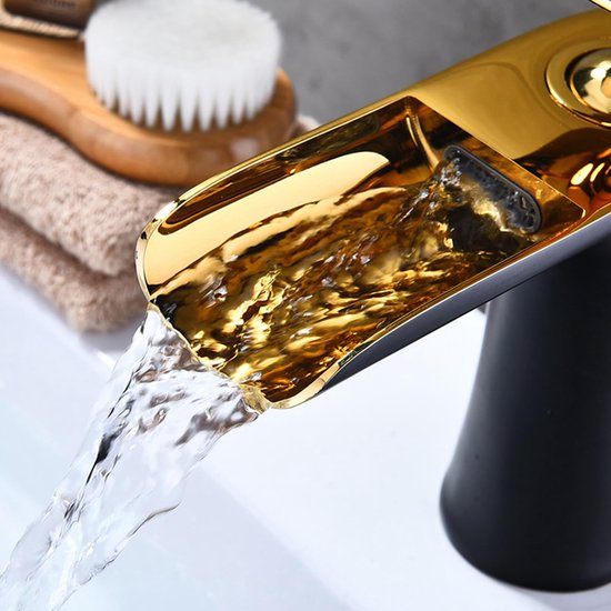 Upgrade uw badkamer met de Hoge Mengkraan inĀ Goud ā een combinatie van schoonheid en praktische elegantie.