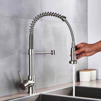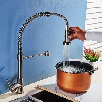 - Uittrekbare Uitloop: De hoge uitloop kan worden uitgetrokken, waardoor je gemakkelijk in elke hoek van de wastafel of gootsteen kunt komen.